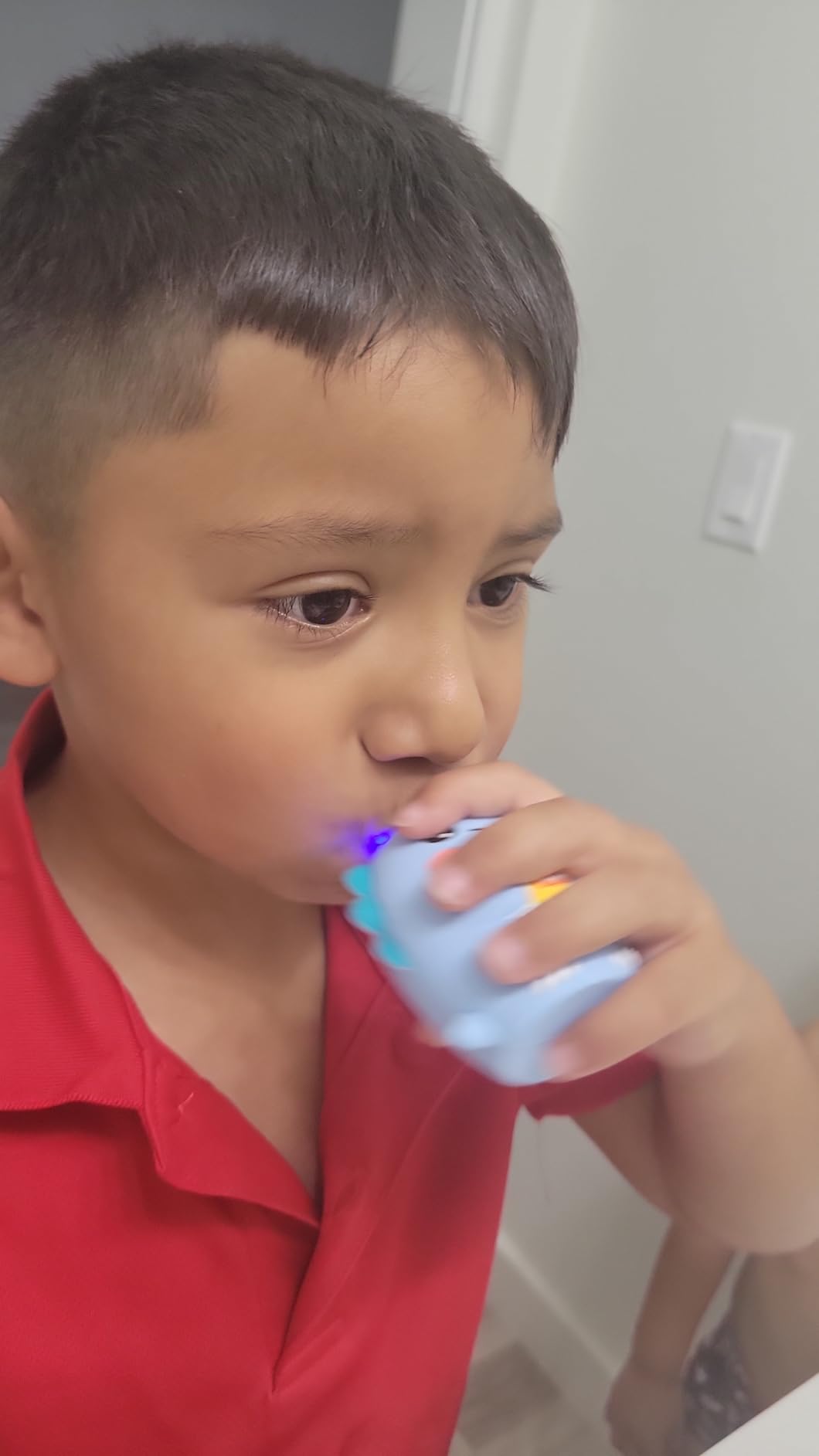 “Tandenpoetsen was altijd een uitdaging met mijn dochter, met veel klagen en uitstelgedrag. Met de Dino Smile giechelt ze juist en laat ze het trots aan haar broertje zien. Het schattige dinosaurusontwerp maakt haar enthousiast, en ik merk dat haar tandjes nu al veel schoner zijn.”